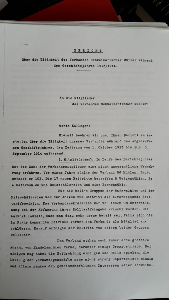 Auszug des “Bericht über die Tätigkeit des Verbandes der Schweizerischen Müller während des Geschäftsjahres 1913/1914”
