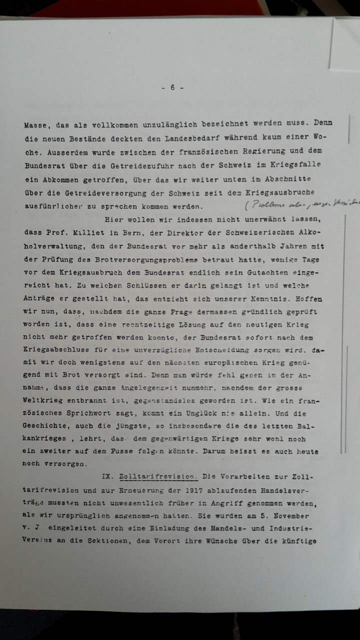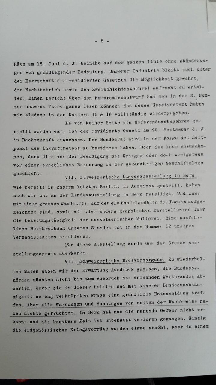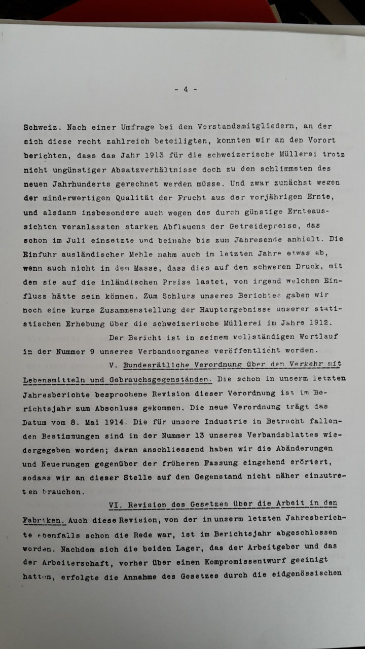 Auszug des “Bericht über die Tätigkeit des Verbandes der Schweizerischen Müller während des Geschäftsjahres 1913/1914”