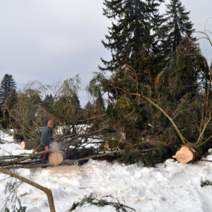 Winterstürme 2018 Anfangs Januar brausten 3 grosse verheerende Stürme über die Schweiz: Burglind, Evi und Friederike. Schöne Namen – grosser Schaden. 5 Bäume, grosse Rottannen lagen erschlagen auf unseren Waldweiden.