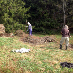 Spalt zu SpaltFreundInnen kamen mir zu Hilfe und an einem Tag konnten wir fast alles ordentlich am Waldrand aufbiegen. Denn auf der Waldweide konnte es nicht bleiben. Schlussendlich soll da ja Gras wachsen können.