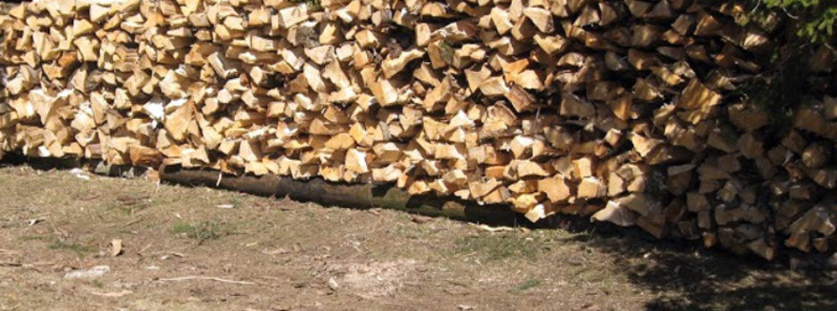 Meterstücke gespaltenIn mehreren Tagen wurden dann die Meterstücke mit einer grossen hydraulischen Spaltmaschine aufgespalten. Meter für Meter. Eindrückliche Biegen von Holzscheitern lagen nun auf der vorderen Waldweide.