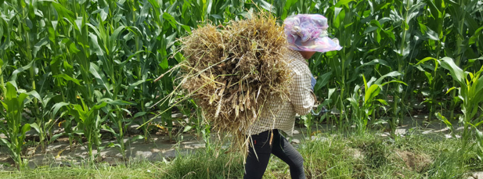 Es gibt sie, die riesigen Monokulturen, wo auf besten Ackerflächen und industriell Mais und Soja (Tier- und Menschenfutter) angepflanzt wird. Diese Familie in Quinhai hat 60 Aren Land, auf denen sie für den Eigenbedarf Getreide anpflanzt.