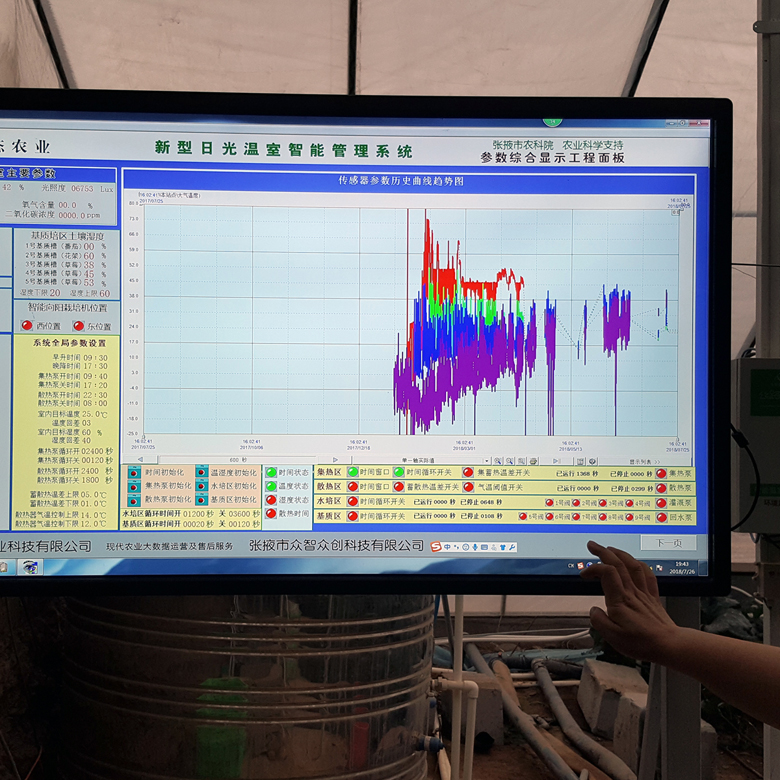 Digitale Landwirtschaft im Gewächshaus: Per Computer wird alles gemessen, gesteuert, gemanaged. Sämtliche Daten werden der Geschäftsleiterin auf PC und smartphone direkt übermittelt. Das so hergestellte Gemüse (bio) ist allerdings zu teuer für den lokalen Markt. Hier produziert man für den Export über die Neue Seidenstrasse nach Russland, Kasachstan, Kirgistan…