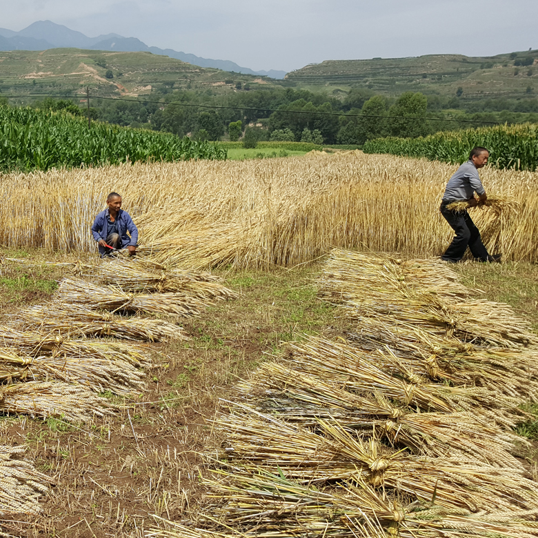 Es gibt sie, die riesigen Monokulturen, wo auf besten Ackerflächen und industriell Mais und Soja (Tier- und Menschenfutter) angepflanzt wird. Diese Familie in Quinhai hat 60 Aren Land, auf denen sie für den Eigenbedarf Getreide anpflanzt.