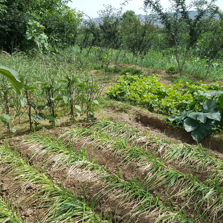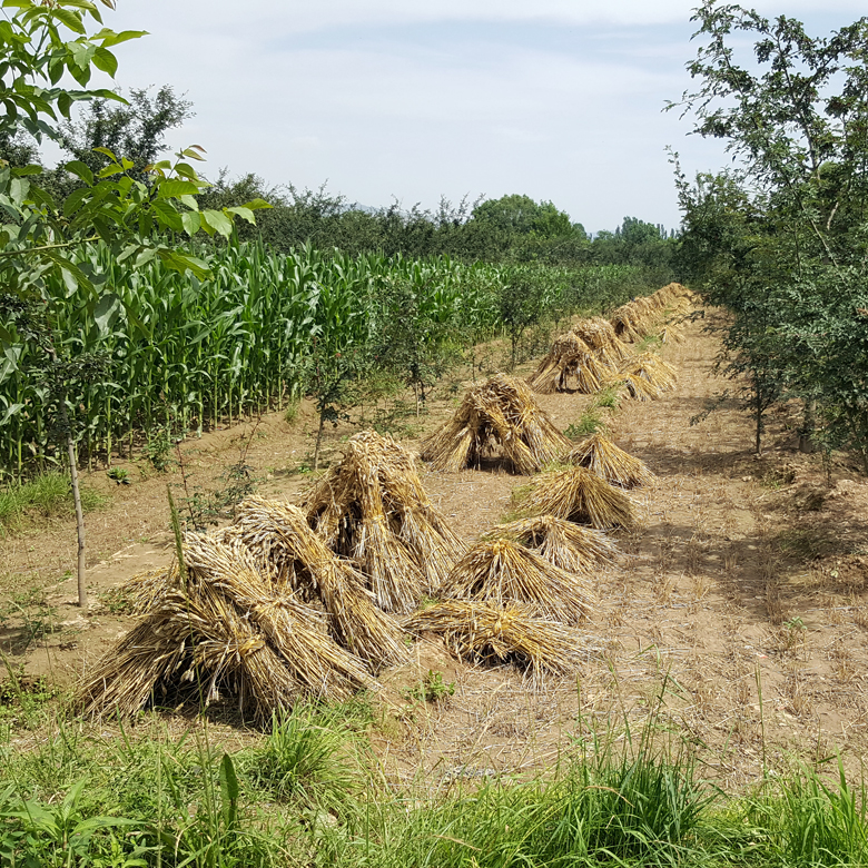 Es ist eine klassische Dreifelderwirtschaft mit rotierenden Fruchtfolgeflächen – mit Szechuanpfefferbäume als Dauerkultur mitten drin. Hier ist alles biologisch. Für alles andere fehlt das Geld.