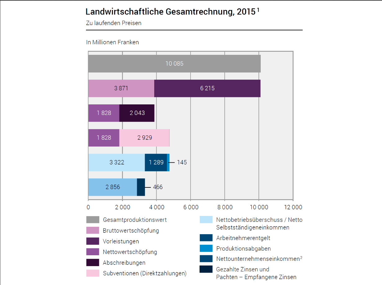 Die Wertschöpfung in Industrie und Handel ist bis 10 mal grösser als in der Landwirtschaft. Wenn man trotzdem beschliesst, eine Landwirtschaft zu behalten, ist das GEGEN DEN MARKT. Die Landwirtschaft kann nur mit Subventionen (Direktzahlungen) und Grenzschutz existieren.