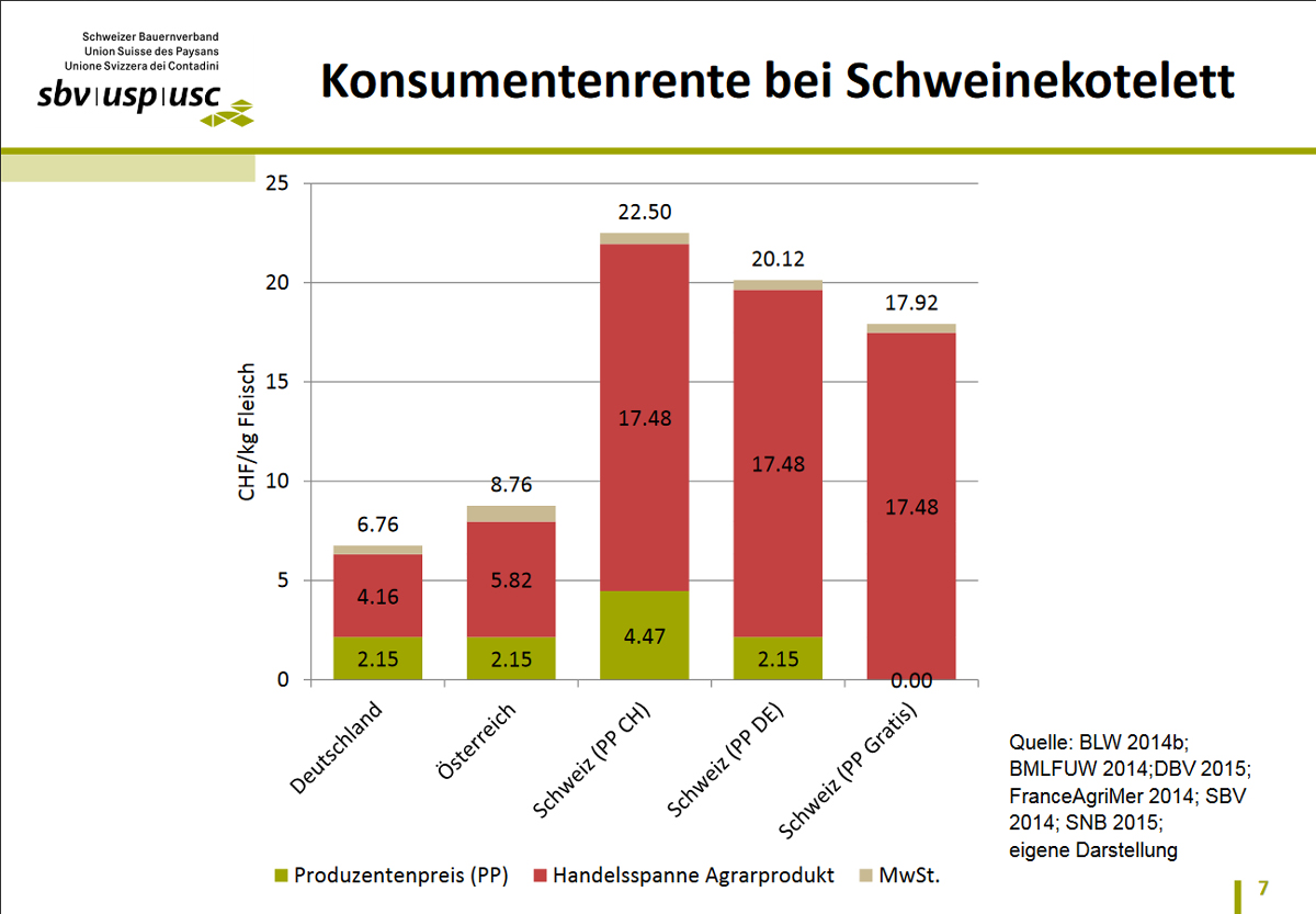 Aber sogar wenn die Produzenten das Fleisch gratis abgäben wären die Koteletts hier trotzdem noch teurer als in der EU!