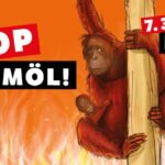 Jedes Jahr brennen die Wälder und Moore in Indonesien, denn die Brandrodung ist die billigste Methode, um Platz für neue Palmölplantagen zu schaffen. Im Jahr 2019 wurden so 300’000 Hektaren Naturlandschaft zerstört, eine Fläche grösser als der Kanton Tessin. Mit den Wäldern sterben nebst der gesamten Flora und Fauna auch die letzten Orang-Utans und Sumatra-Tiger. Multinationale Konzerne wie Nestlé und Unilever beziehen ihr Palmöl nachweislich von Firmen, die an den Brandrodungen und Landraub beteiligt sind. Indonesien ist zudem einer der weltgrössten CO2-Verursacher der Welt. Dabei machen Emissionen von entwässerten Torfböden mehr als 50% der Treibhausgase Indonesiens aus. Statt Waldbrände und Rauch vorzubeugen und ihren Verpflichtungen zur Reduktion der Treibhausgase nachzukommen, hat die Regierung weiterhin zerstörerische Plantagen auf Torfböden genehmigt und handelt entgegen ihrem eigenen Abholzungsmoratorium!