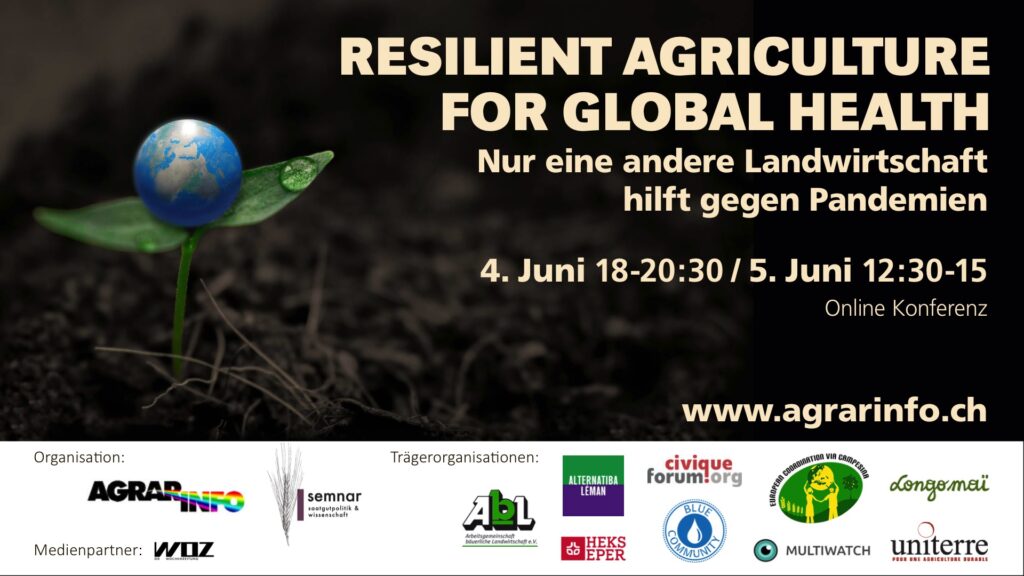 Wo genau liegen die Ursachen der Pandemie? Und welche Rolle spielt hier die Landwirtschaft? Was können wir tun, um künftige Pandemien möglichst zu vermeiden? Das sind, in aller Kürze, die zentralen Fragen unserer Veranstaltung. Wir haben Expert*innen aus den USA, Kanada, Australien und Österreich eingeladen und wollen mit ihnen – und natürlich auch mit unseren Zuhörer*innen und Teilnehmer*innen vor Ort – darüber diskutieren, welche Zusammenhänge zwischen unserer industrialisierten und globalisierten Landwirtschaft, Pandemie(n) und der Klima- und Wasserkrise bestehen. Diskutieren wollen wir auch, welche Strukturen und Akteure die entscheidenden Treiber sind. Gemeinsam wollen wir uns auch über Strategien Gedanken machen, wie man einen anderen Umgang mit der Natur, vor allem in der Landwirtschaft, fördern könnte, um nicht nur weitere Pandemien möglichst zu verhindern, sondern auch die Erderhitzung tatsächlich begrenzen zu können. Zentral ist hierbei auch die Frage, wer diese Alternativen umsetzen könnte.